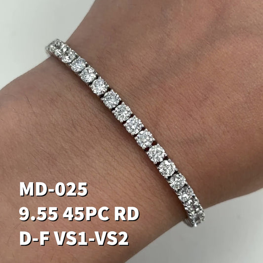 9.55 Cts. Natural Round Diamond Tennis Bracelet