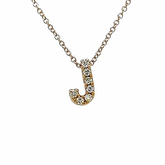 14k Yg 0.05 Round Initial J Diamond Necklace