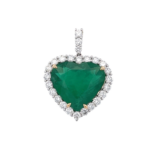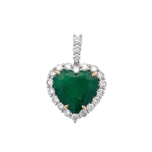 18K TWT 4.58 Heart Shape Emerald Halo Pendant