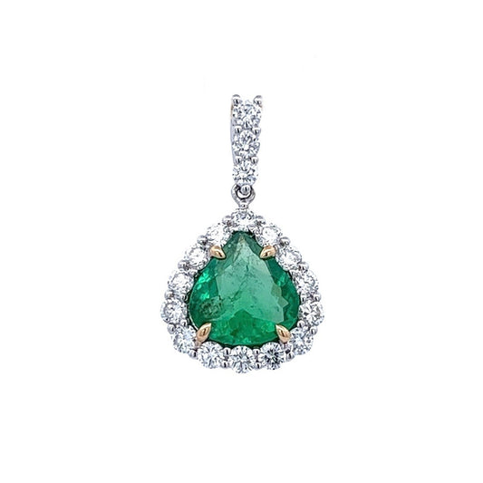 18k Twt 1.62 Pear Shape Emerald Halo Pendant GIA