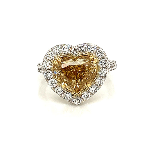 Anillo con halo de diamantes amarillo marrón elegante en forma de corazón natural de 5,01 quilates GIA
