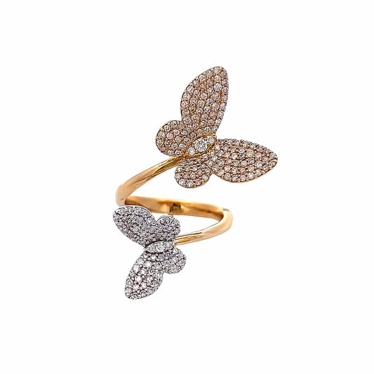 Anillo Doble Mariposa De Diamante Natural 1.13 Cts