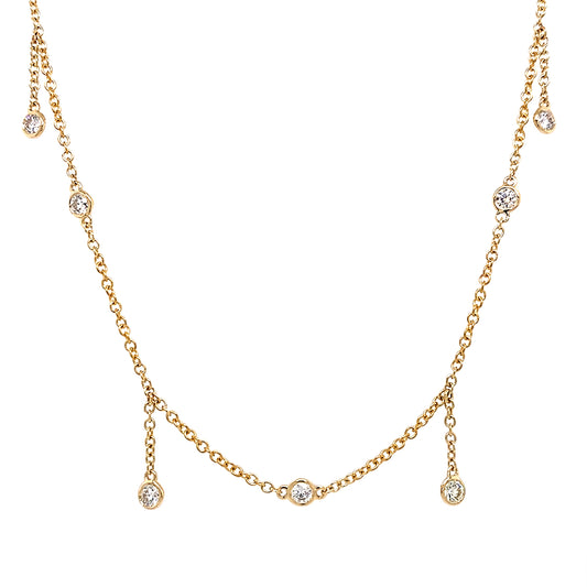 Collar con gotas de diamantes cortados a medida de 18 k Yg 1,25 Rd Tcw