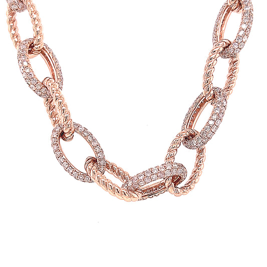 Collar De Eslabones Oblongos De 18k Rg 13.11 Rd Tcw