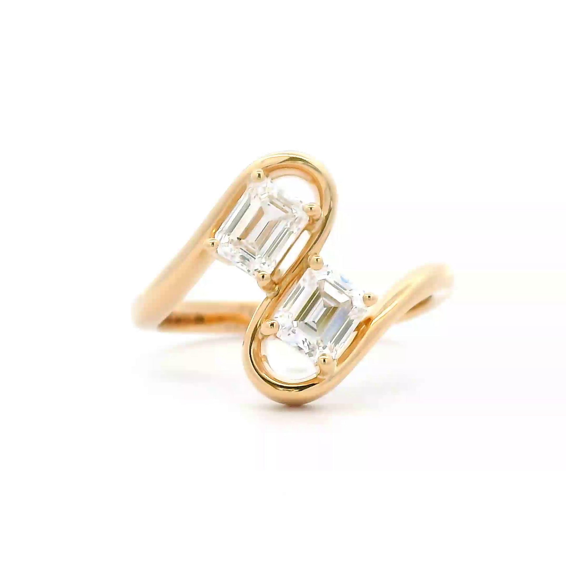 Indulge in luxury with our 1.06 Cts Natural Diamond Emerald Cut Two Stone Ring. Crafted with exquisite precision, this ring features two stunning emerald cut diamonds that radiate sophistication and elegance. Elevate any look with this premium accessory that exudes exclusivity and beauty.