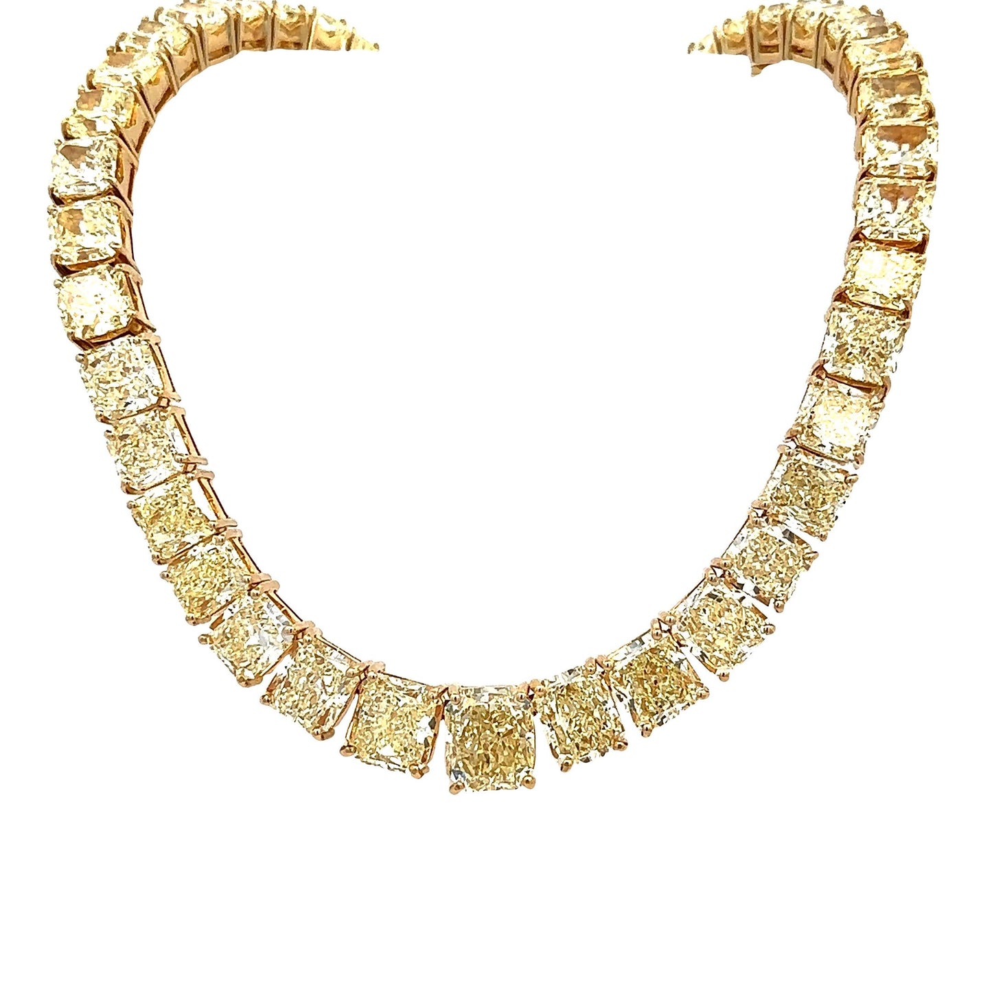 Collar de eternidad con forma radiante Riviera de diamantes amarillos naturales de fantasía de 116,80 quilates