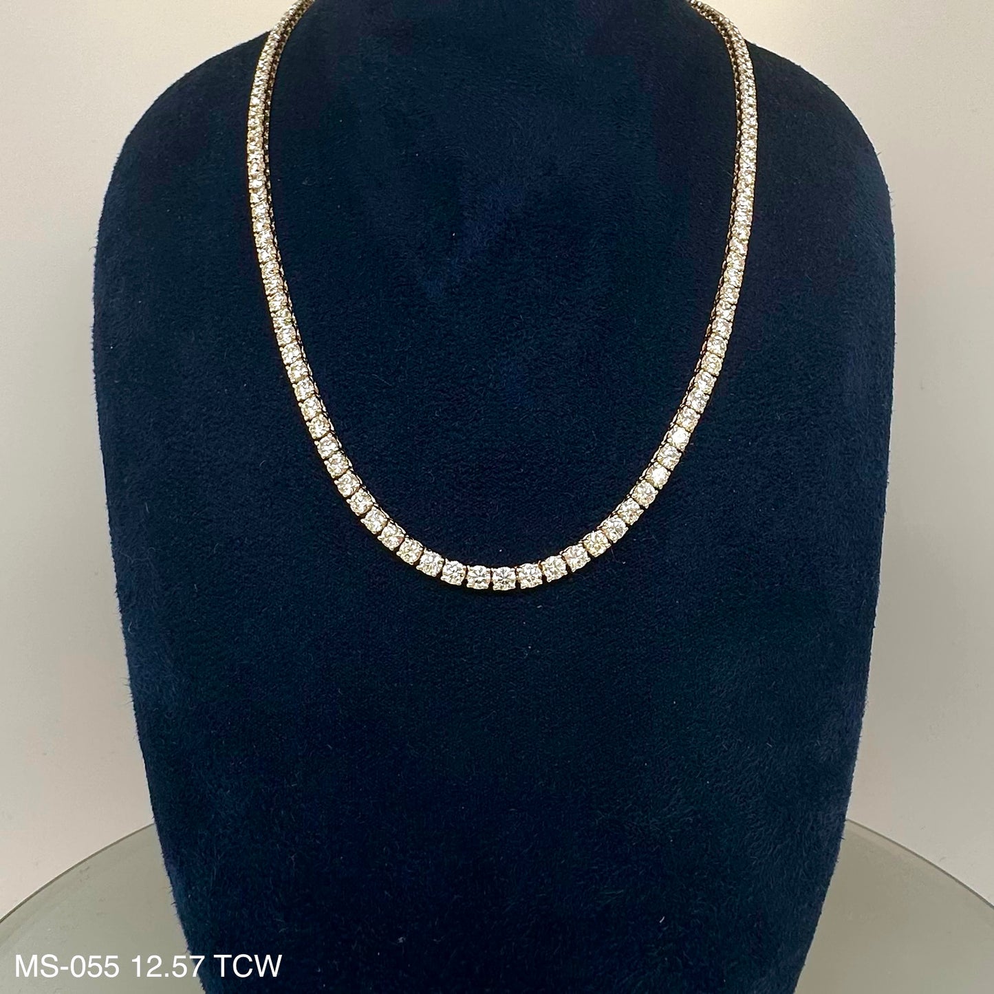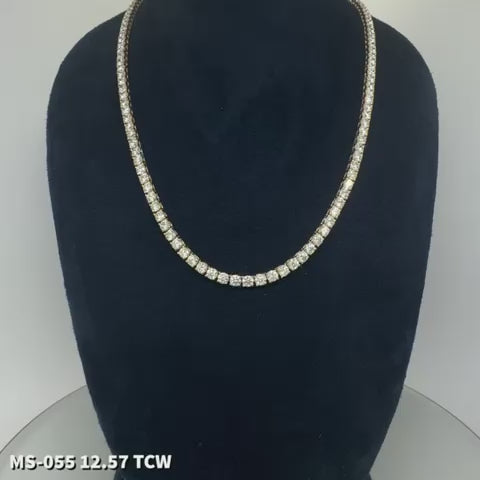 Experimente el lujo de la elegancia con este 12,57 Cts. Collar de eternidad de diamantes naturales. Adornado con brillantes diamantes naturales que cautivan la vista y deslumbran los sentidos, este exquisito collar añade un toque lujoso a cualquier look. Un clásico atemporal, es el accesorio perfecto y sofisticado para una ocasión especial.