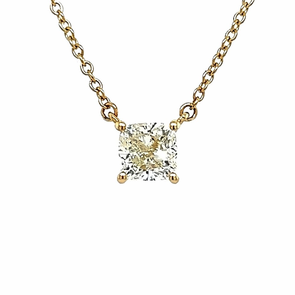 Este impresionante collar con solitario de talla cojín de 1,05 quilates Yg de 14 k está elaborado por expertos con un diseño elegante con un brillante solitario de talla cojín de 1,05 quilates. Elaborado en oro amarillo de 14k, está cuidadosamente diseñado para brindar una belleza duradera y un atractivo elegante.