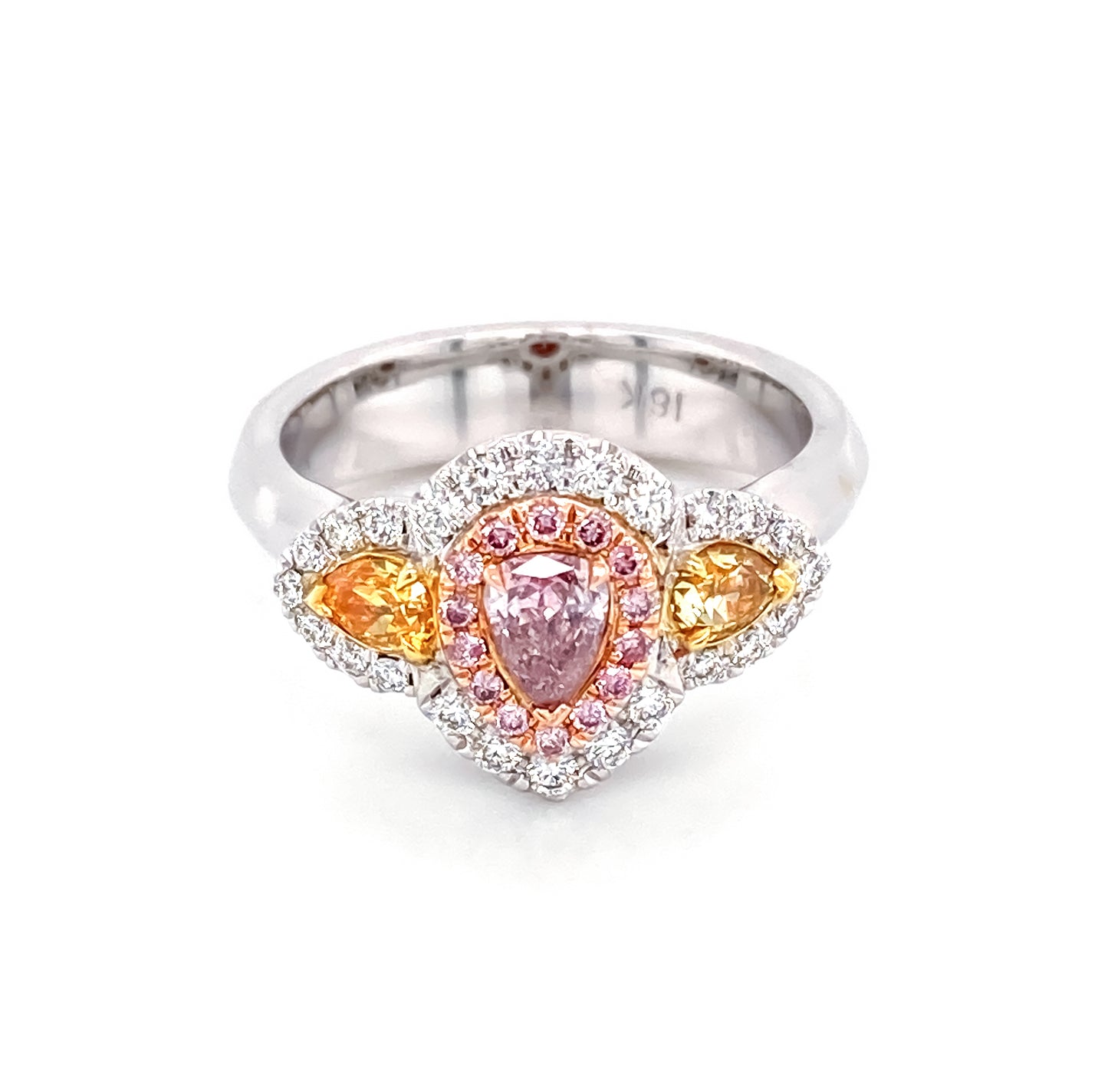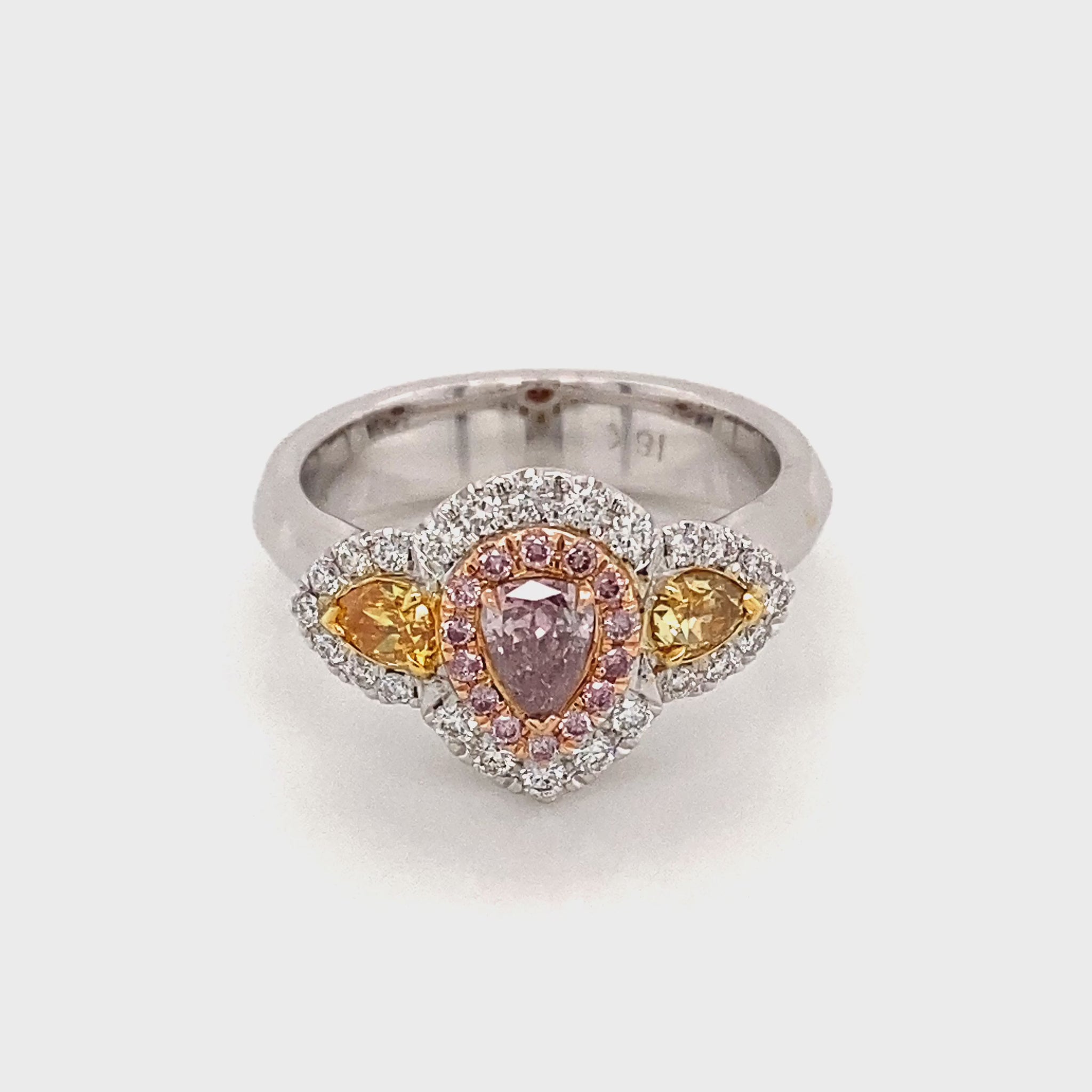 Este impresionante anillo con forma de pera de color rosa púrpura elegante de 0,22 tricolor de 18 k es una pieza llamativa atemporal. Elaborado en oro de alta calidad, presenta un diamante en forma de pera de color rosa púrpura que cautivará con su brillo deslumbrante. Es un accesorio perfecto para cualquier conjunto y imprescindible para tu colección.