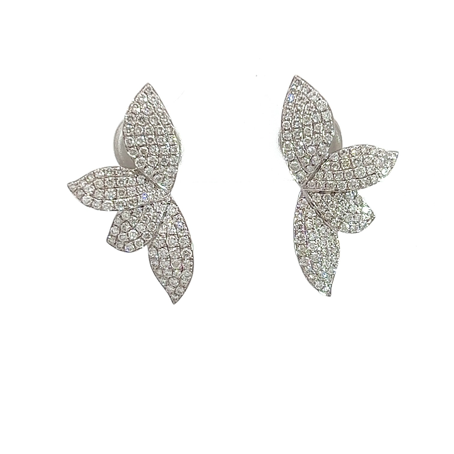 Estos hermosos aretes están elaborados con oro blanco de 18k, pesan 1,00 quilates en total y cuentan con un diamante de talla redonda TCW de 0,50. El diseño de medias alas es delicado y elegante, lo que los convierte en el accesorio perfecto para cualquier día especial.