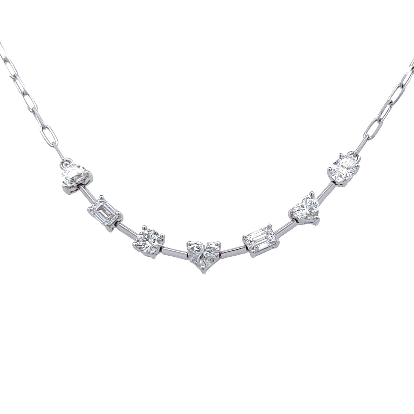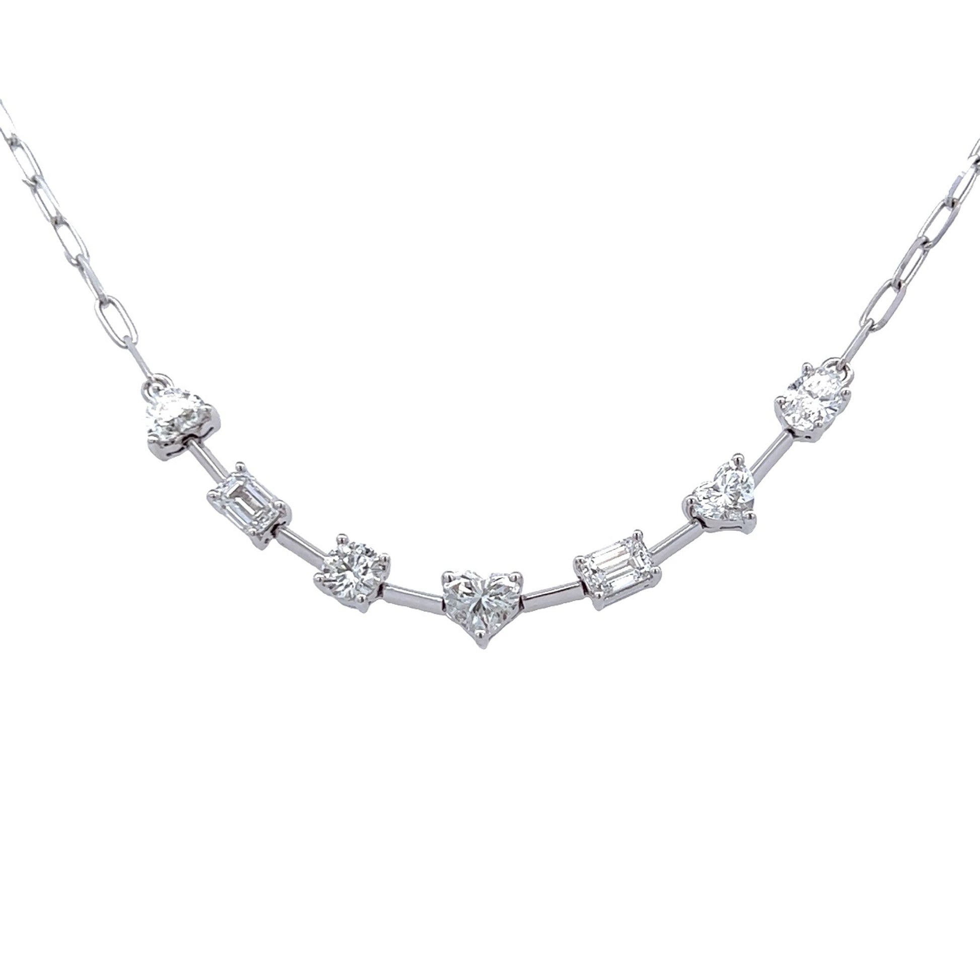 Este collar de oro blanco de 18k presenta una llamativa combinación de formas y curvas que es perfecta para cualquier ocasión. Elaborado con 1,92 quilates de diamantes, el collar brilla y brilla cuando capta la luz. Su elegancia la convierte en una joya ideal para ocasiones especiales y para el día a día.
