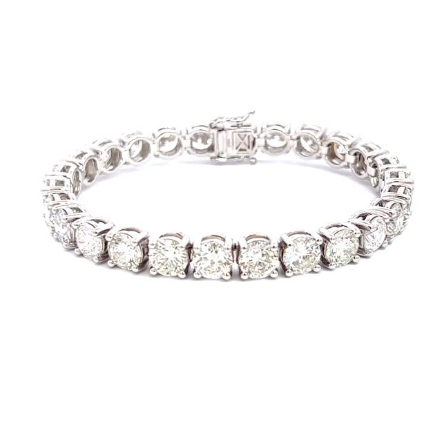 Esta pulsera de tenis de 18k Wg 26.46 Rd Tcw es perfecta para quienes buscan una pieza atemporal. Elaborada en oro blanco de 18k con un peso total de 26,46 quilates, esta hermosa pulsera seguramente llamará la atención. Un complemento clásico para cualquier colección de joyas.
