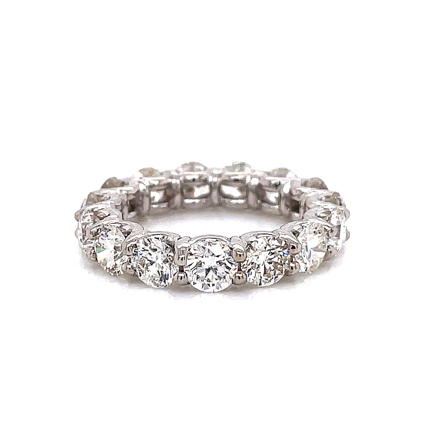 Eleve su apariencia con esta alianza de eternidad atemporal de oro blanco de 18 quilates, que presenta una sola hilera de diamantes de talla redonda de 4,23 quilates. Elaborada en oro blanco de 18 quilates, esta lujosa banda brilla con sofisticación. Haga una declaración con este clásico anillo de diamantes.
