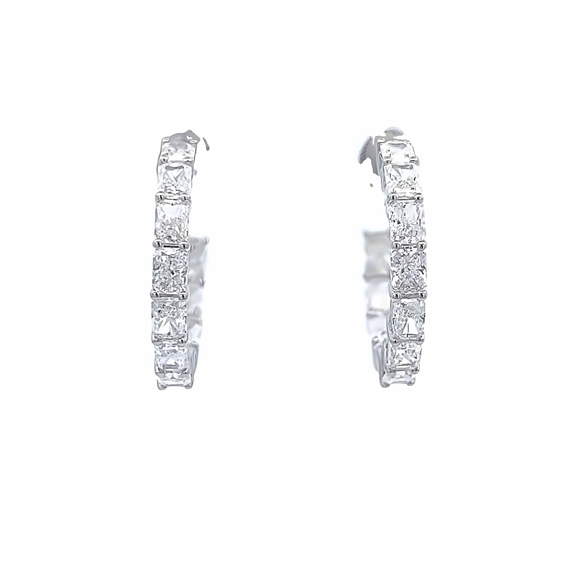 Estos aretes de aro con diamantes de talla radiante en oro blanco de 18 quilates de 3,22 quilates están diseñados por expertos con un corte y una calidad de diamante exquisitos. Estos aretes, una opción lujosa para cualquier colección de joyas, presentan un diseño atemporal y un impresionante brillo de diamantes.
