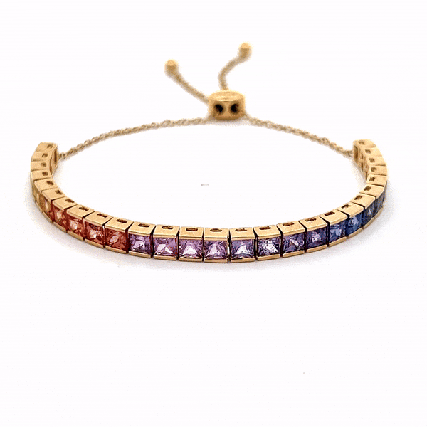 This stunning adjustable bracelet features 5.99 Cts of Rainbow Ombre Sapphires, showcasing a beautiful blend of hues. Made with high-quality materials, this bracelet offers both style and versatility, making it a must-have accessory for any jewelry collection. Elevate your look with the vibrant colors of this bracelet.