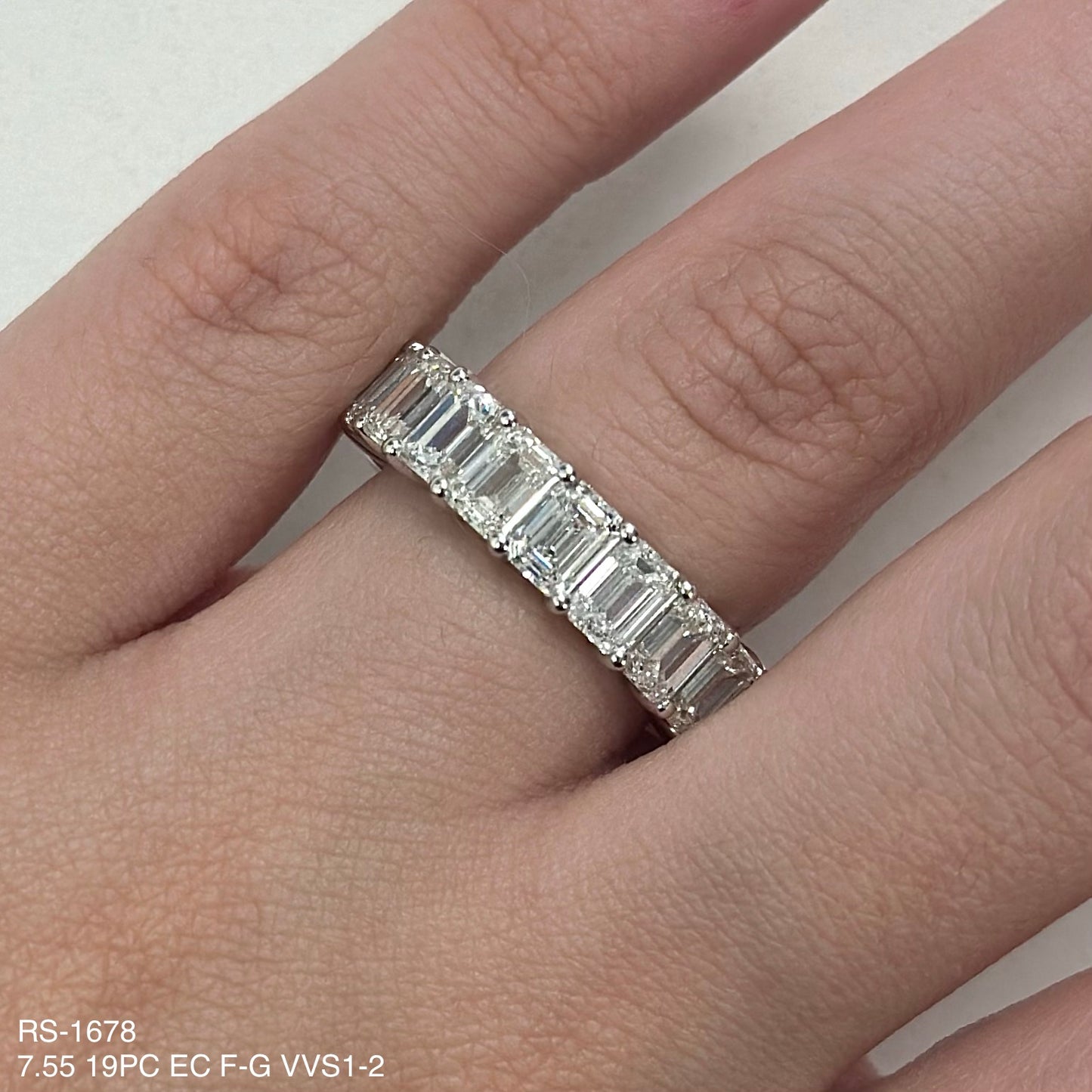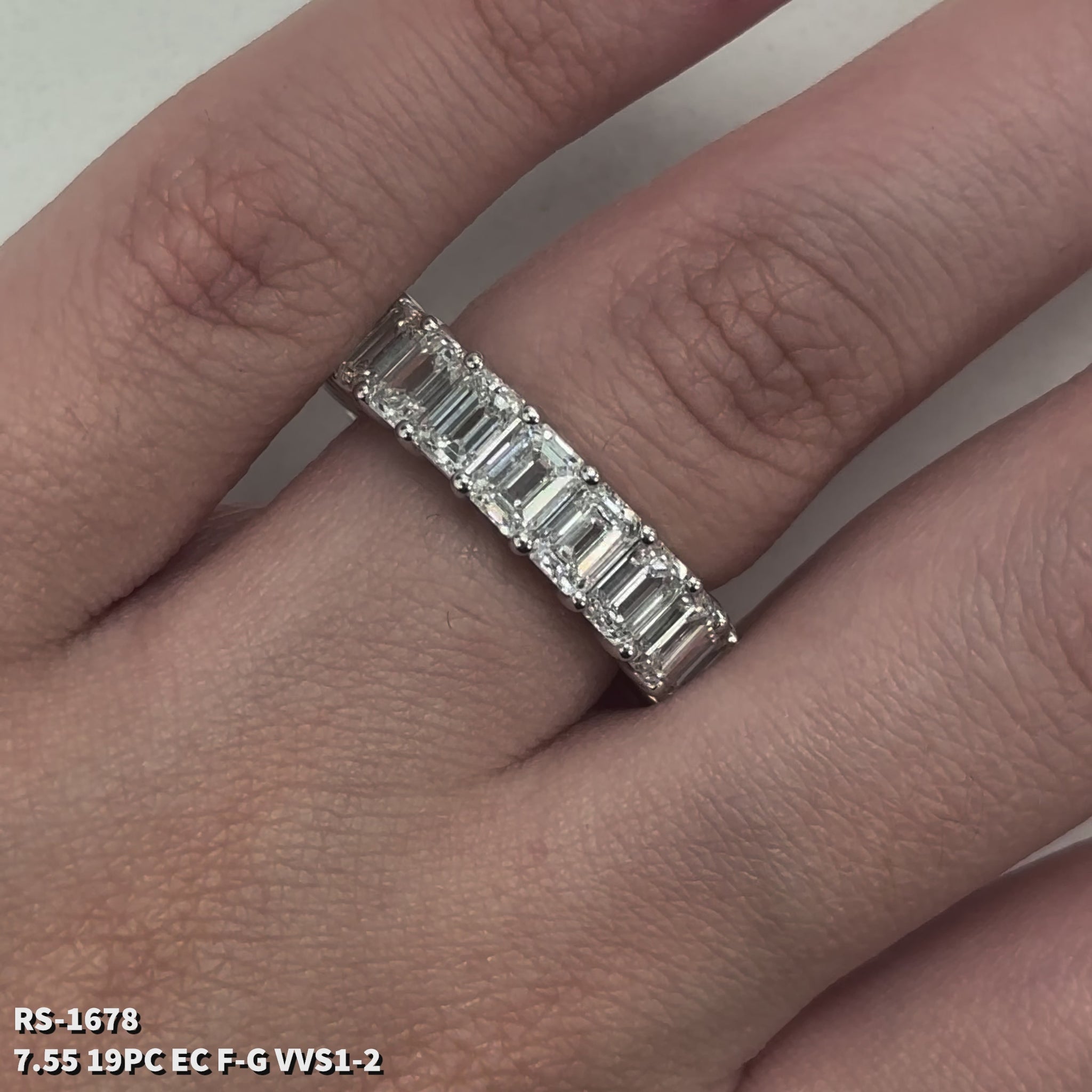 Anillo de eternidad de talla esmeralda de diamantes naturales de 7,55 quilates