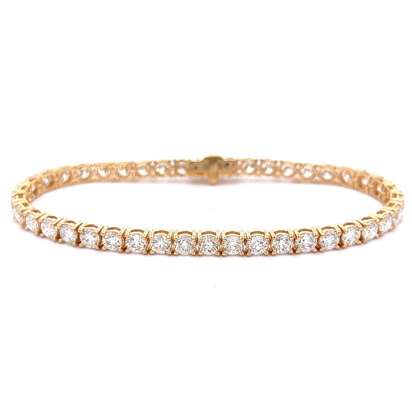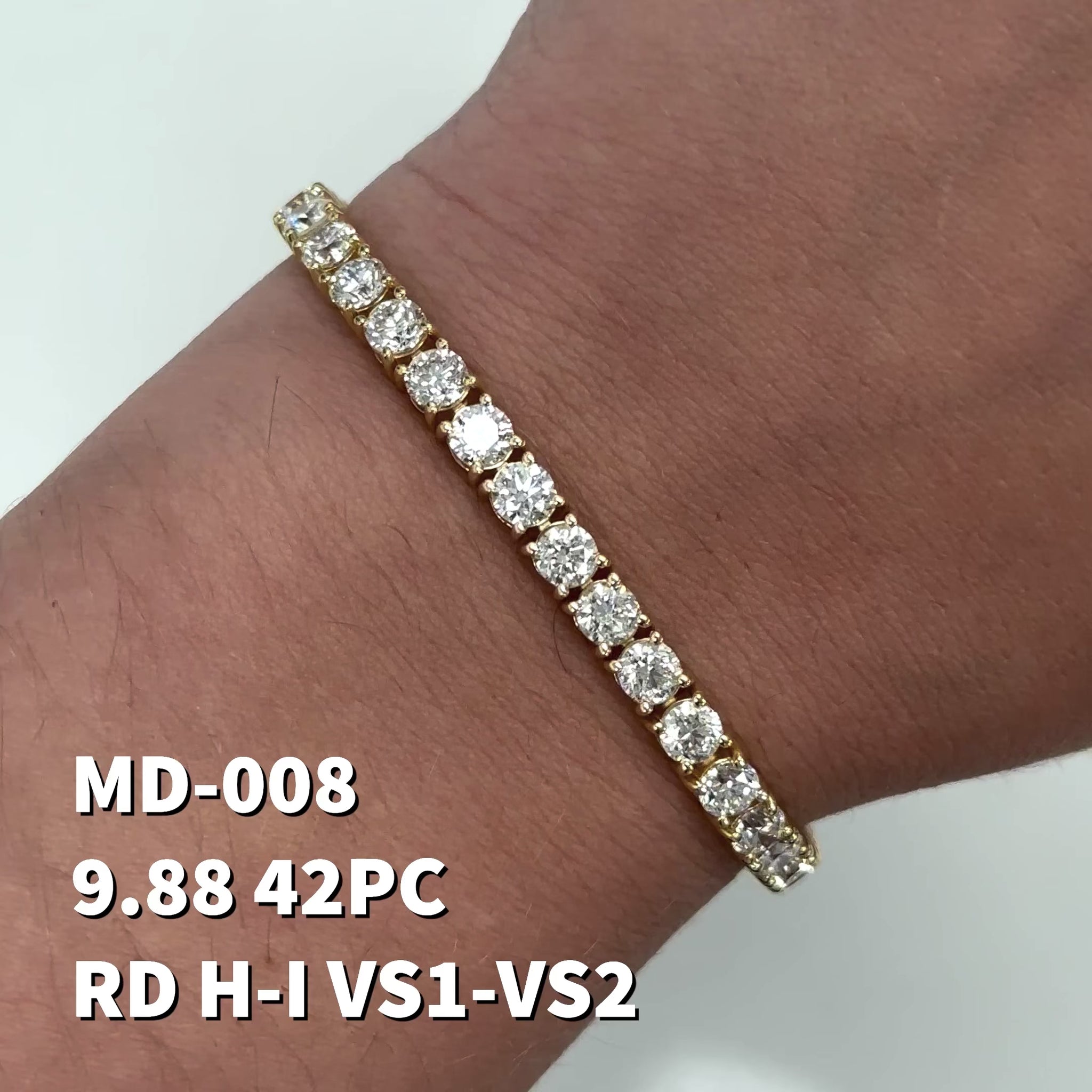 Disfrute de la lujosa elegancia de nuestros 9,88 quilates. Pulsera de tenis de diamantes redondos naturales. Elaborada con precisión y cuidado, esta pulsera presenta deslumbrantes diamantes redondos naturales con un peso total en quilates de 9,88 quilates. Realza cualquier conjunto con la brillante sofisticación de esta pieza premium.
