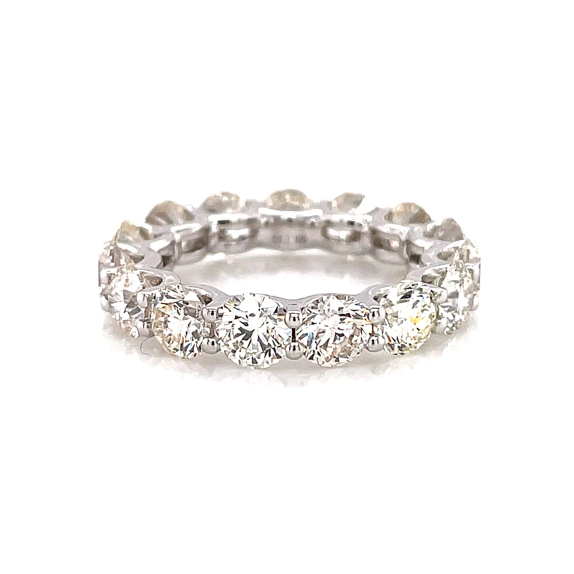 Show your everlasting love with this stunning 14K White Gold 4.62 carat total weight eternity band. This beautiful ring features round cut stones in a seamless design that wraps around your finger. Guaranteed to make an impression, this timeless piece is the perfect way to commemorate your relationship.