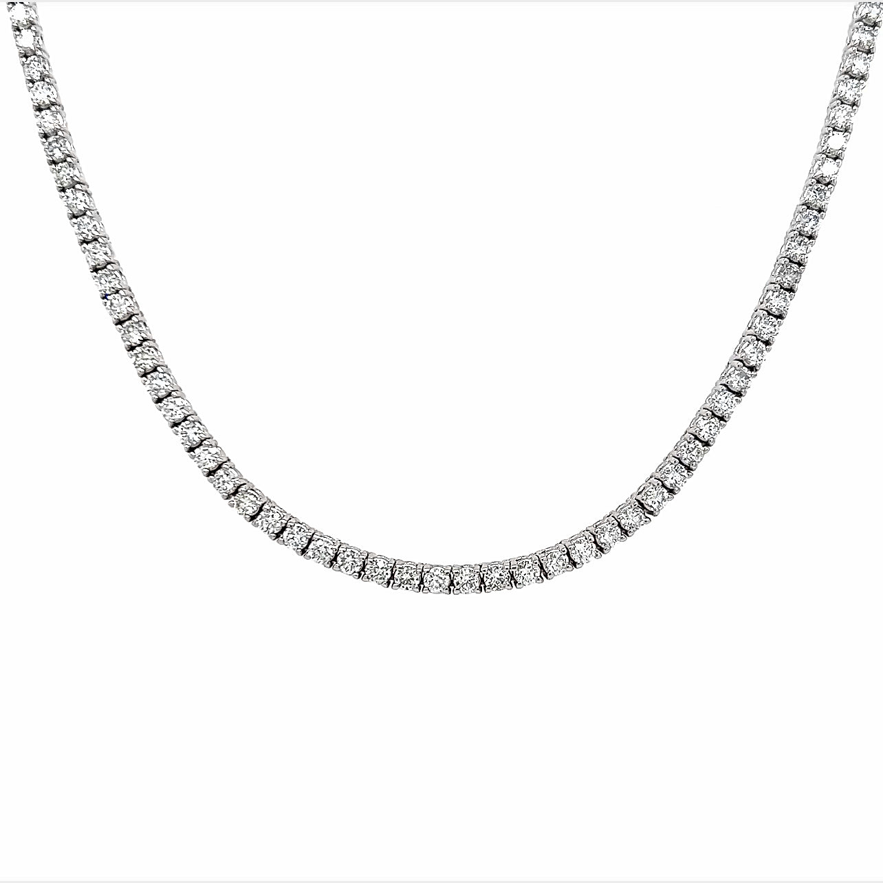 This beautiful 14K white gold eternity necklace features a 5.41 TCW of luminous round diamonds. Enjoy its timeless elegance and luxurious shine, perfect for any special occasion.