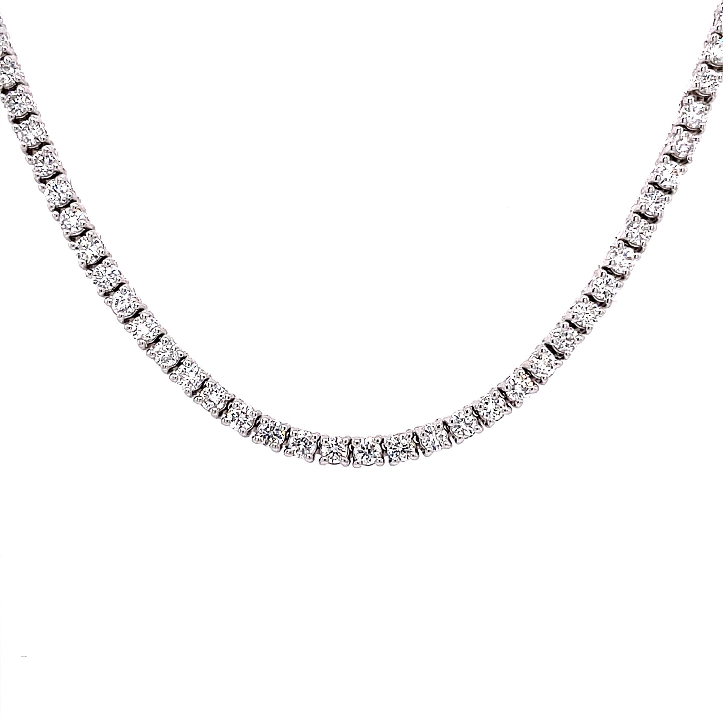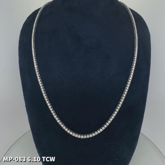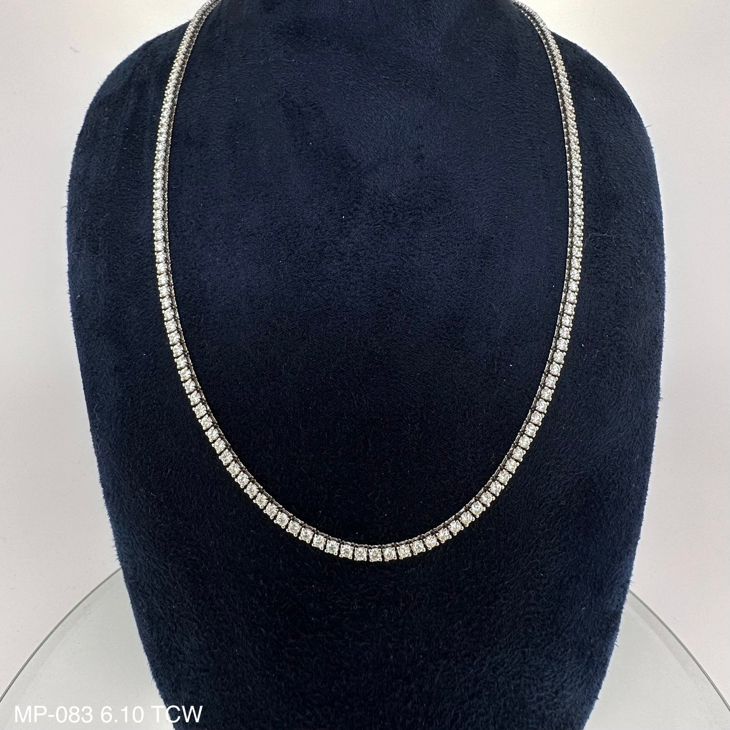 This classic 14K white gold diamond eternity necklace features a total carat weight of 6.10 round diamonds. Its timeless design is perfect for special occasions, making this an elegant accessory that can be treasured for years to come.