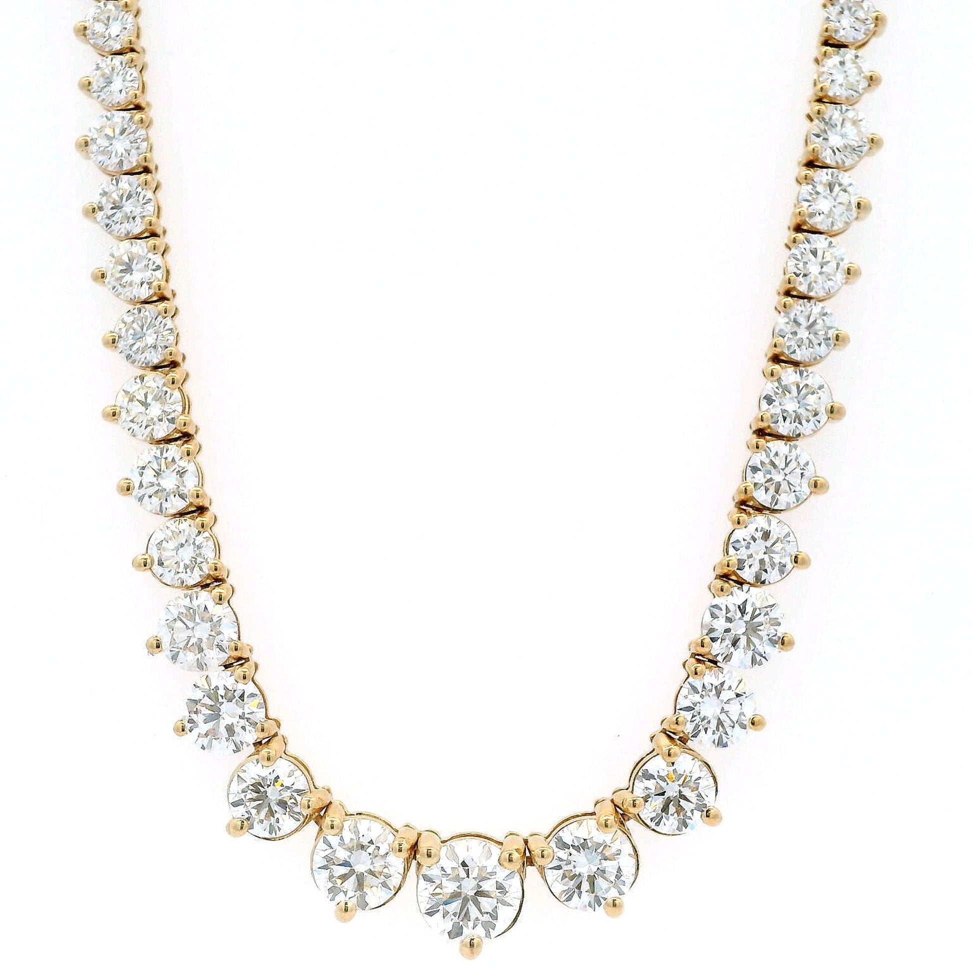 Indulge in luxury with our 16.02 Cts. Natural Diamond Riviera Round Eternity Necklace. This exquisite piece features a stunning array of natural diamonds in a timeless round cut, creating an everlasting sparkle. Elevate any look with this sophisticated and exclusive necklace.