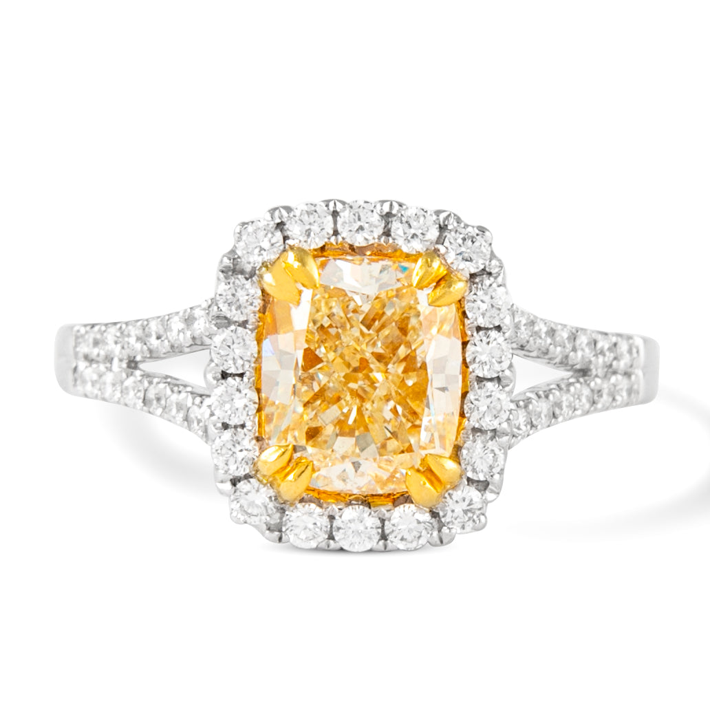 18k Twt 2.01 Radiant Fancy Intense Yellow Halo Ring