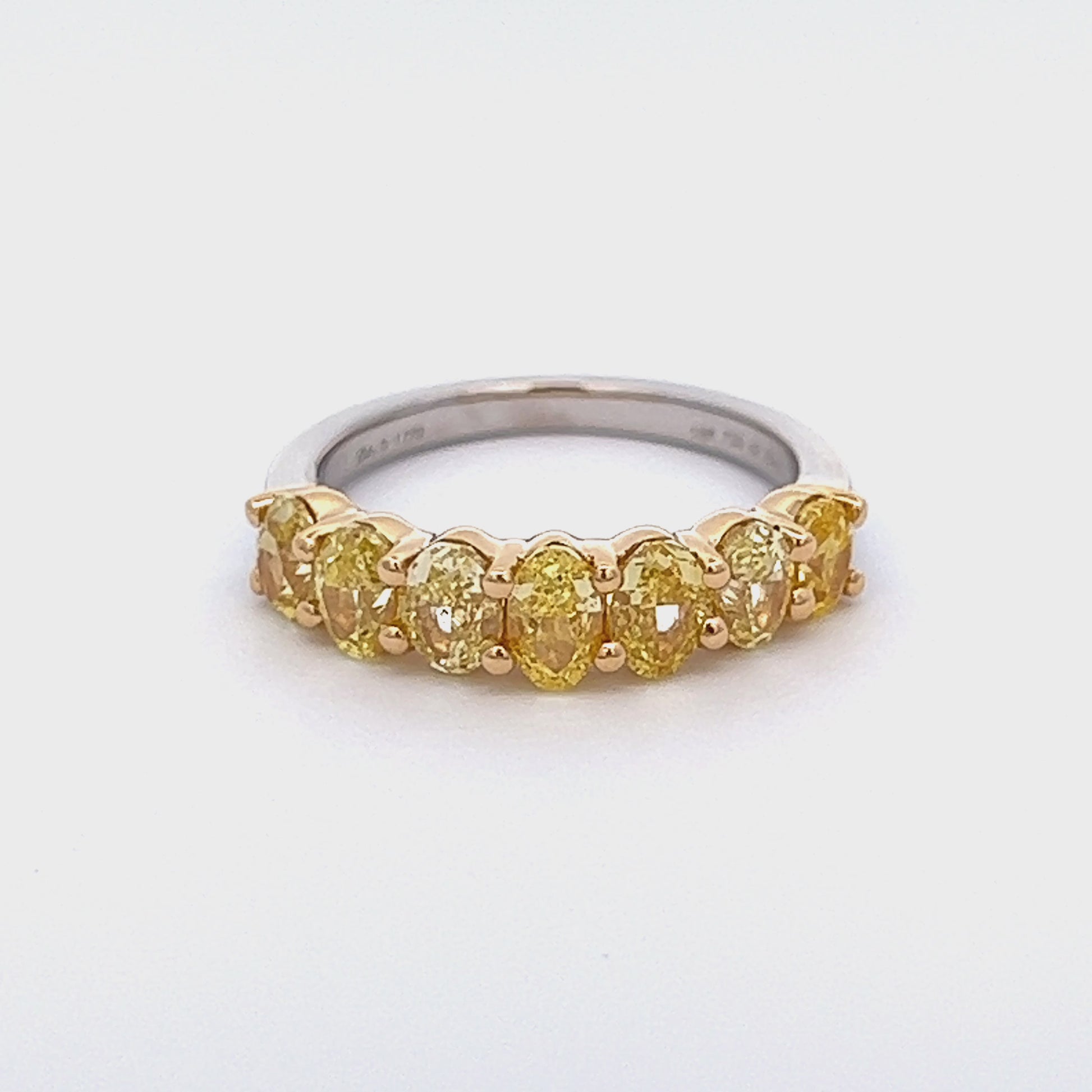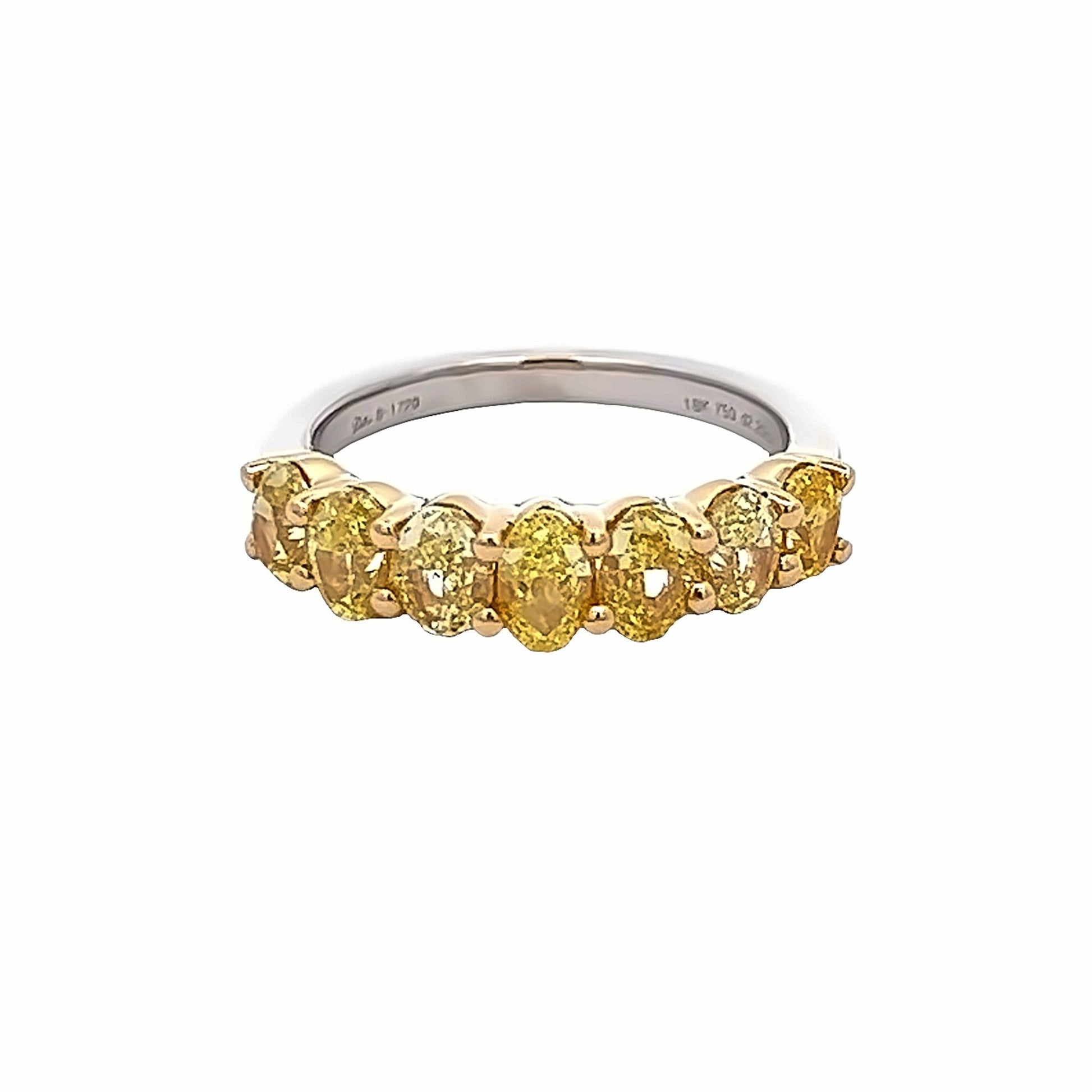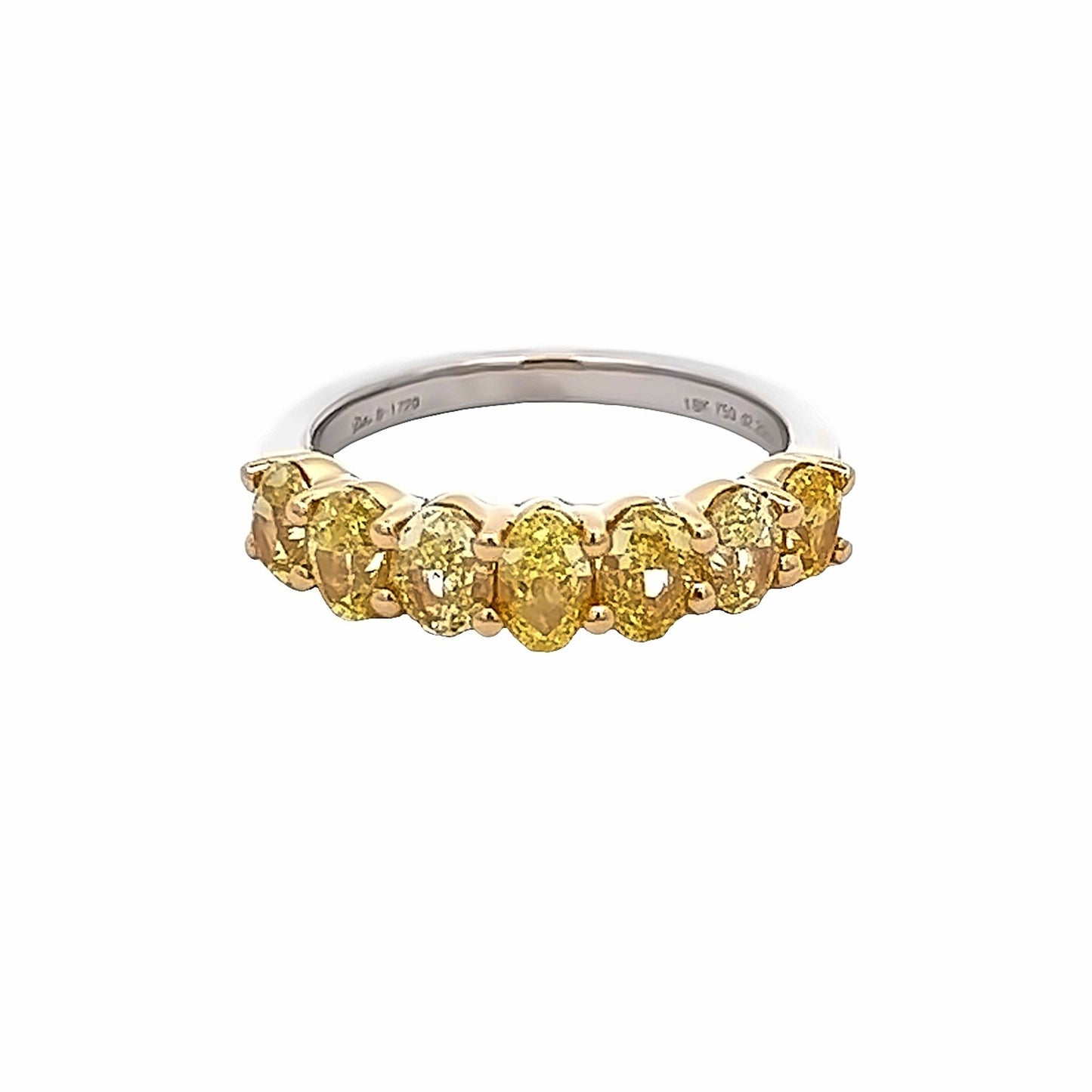 This 18K Twt 2.20 Oval Fancy Yellow Diamond Half Eternity Band is the perfect way to show your everlasting affection. Crafted of 18k yellow gold and studded with 2.20 carats of oval, brilliant-cut diamonds, you'll sparkle wherever you go.