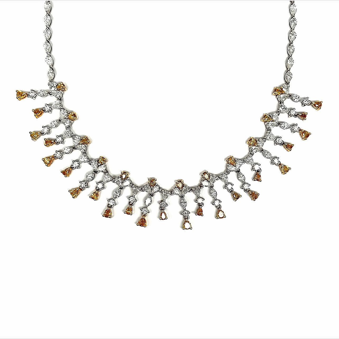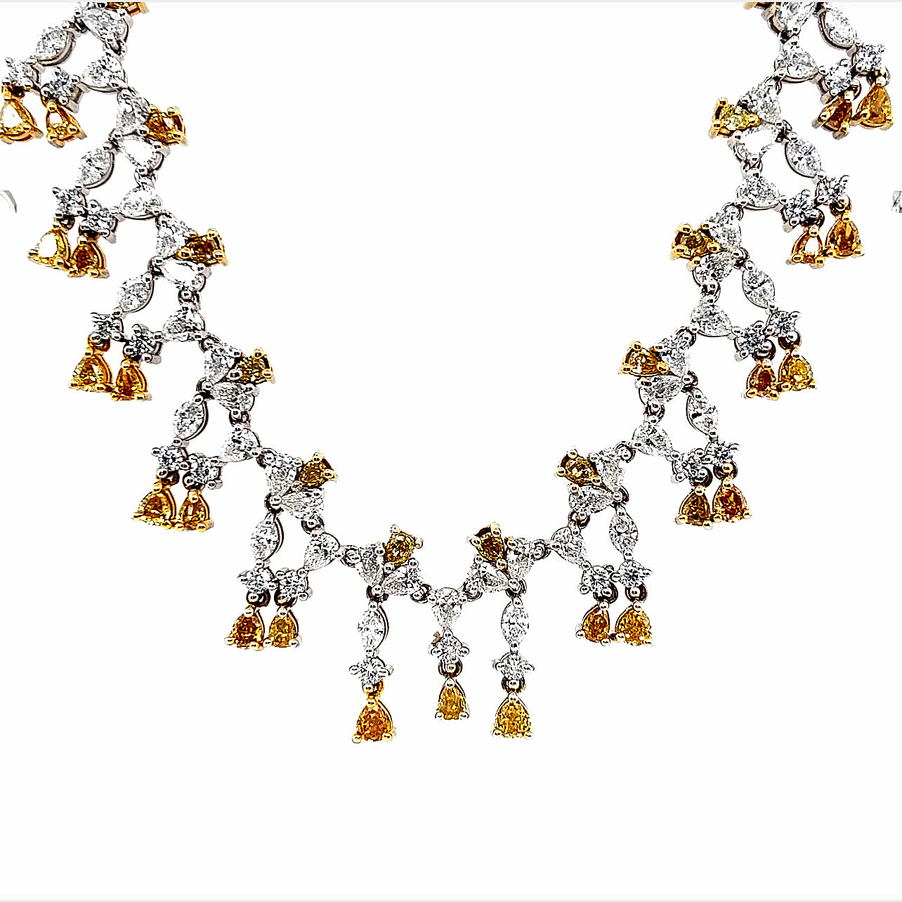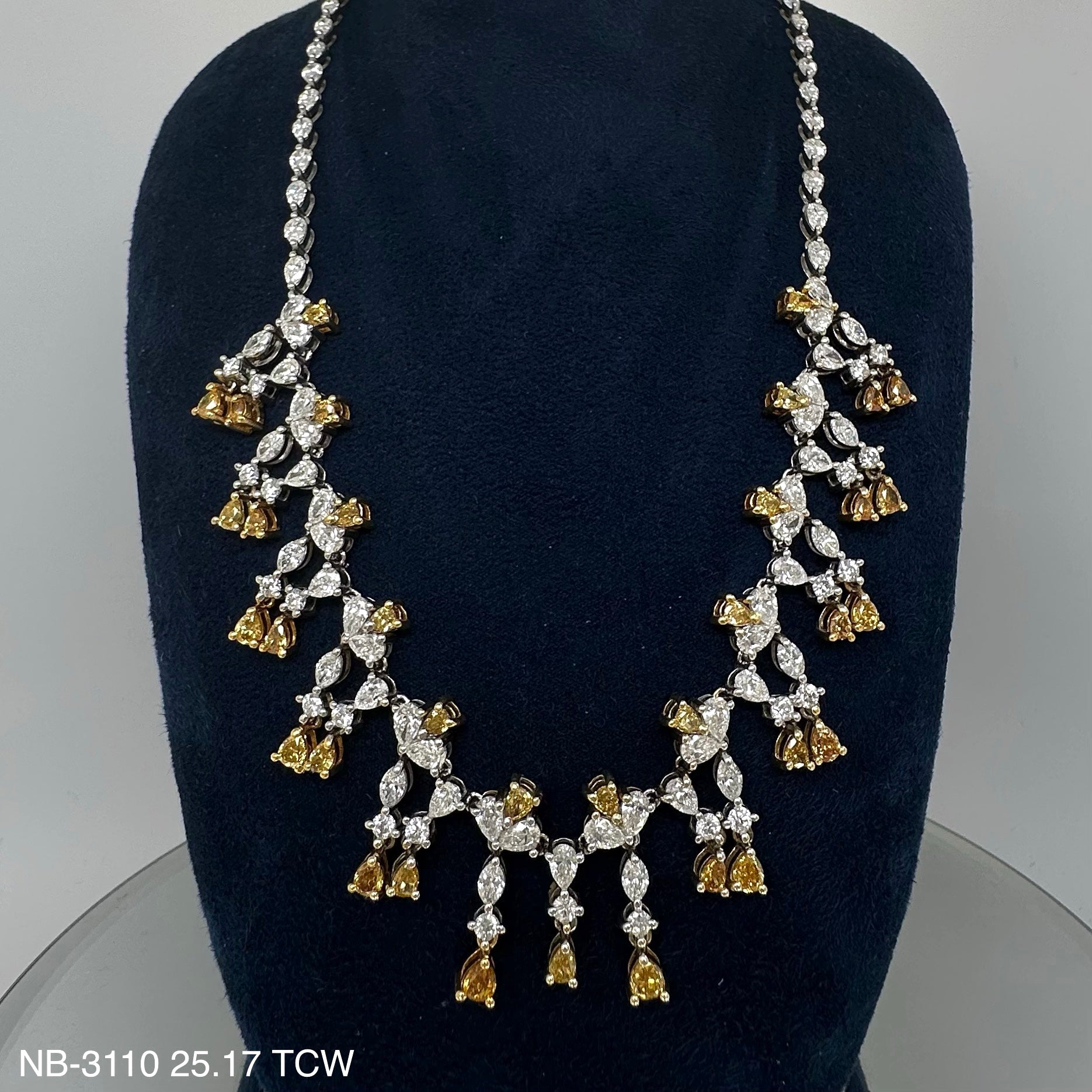 25.17 Cts Fancy Yellow and White Natural Diamond Dangle Mix Shape Eternity Necklace