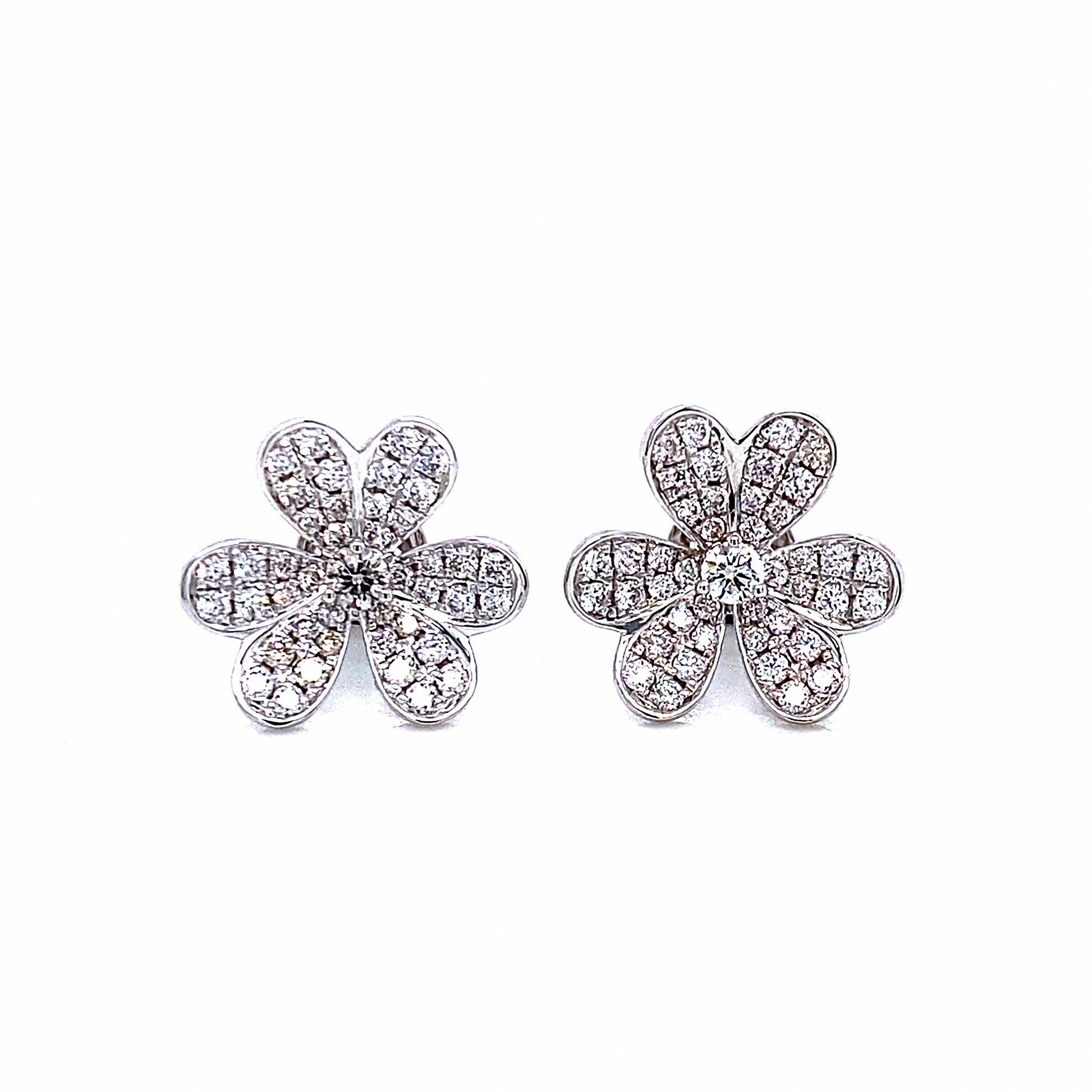 Complete your look with these exquisite 18K white gold earrings. Boasting 0.72ct round total carat weight diamonds, these graceful flower-shaped earrings beautifully sparkle. For a timelessly elegant look, wear these earrings and add a touch of sophistication to any outfit.
