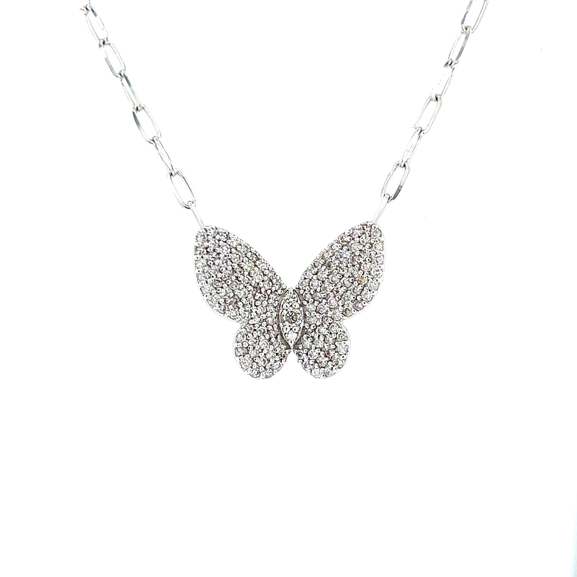 18k Wg 0.74 Rd Tcw Butterfly Diamond Necklace