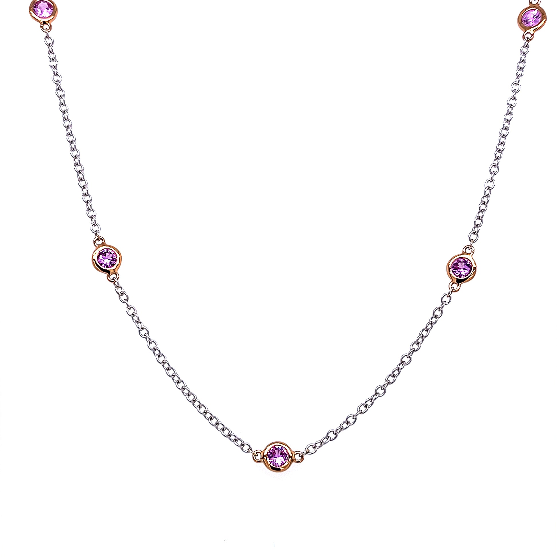 18k Wg 1.35 Pink Sapphire By Yard Necklace