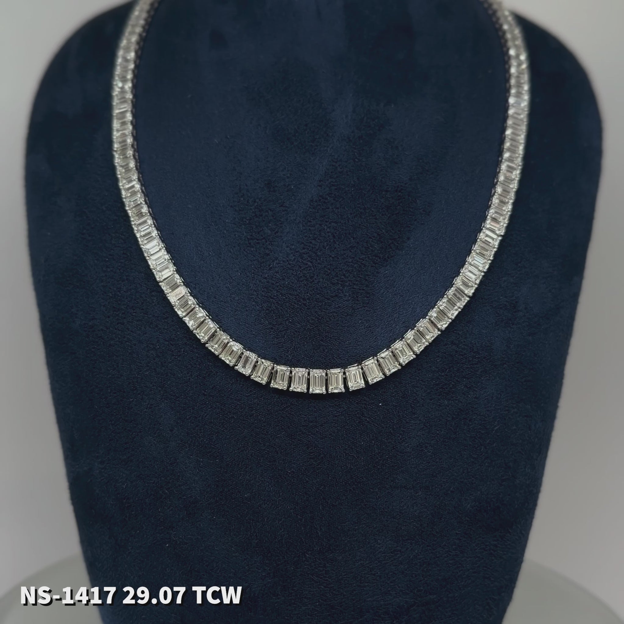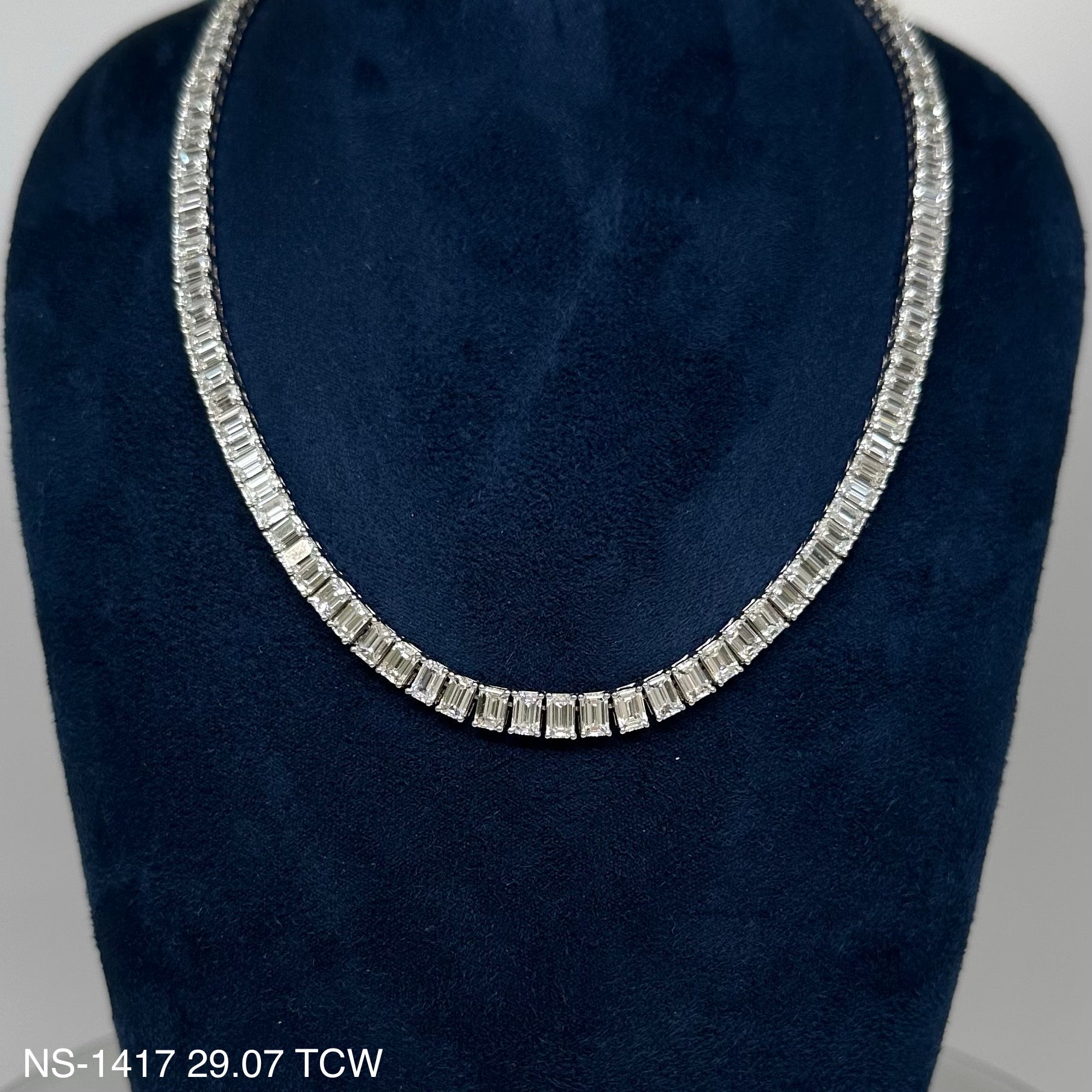 29.07 Cts. Natural Diamond Emerald Cut Eternity Necklace