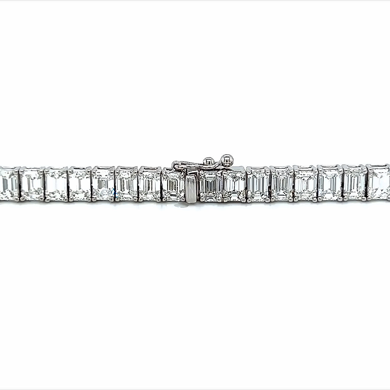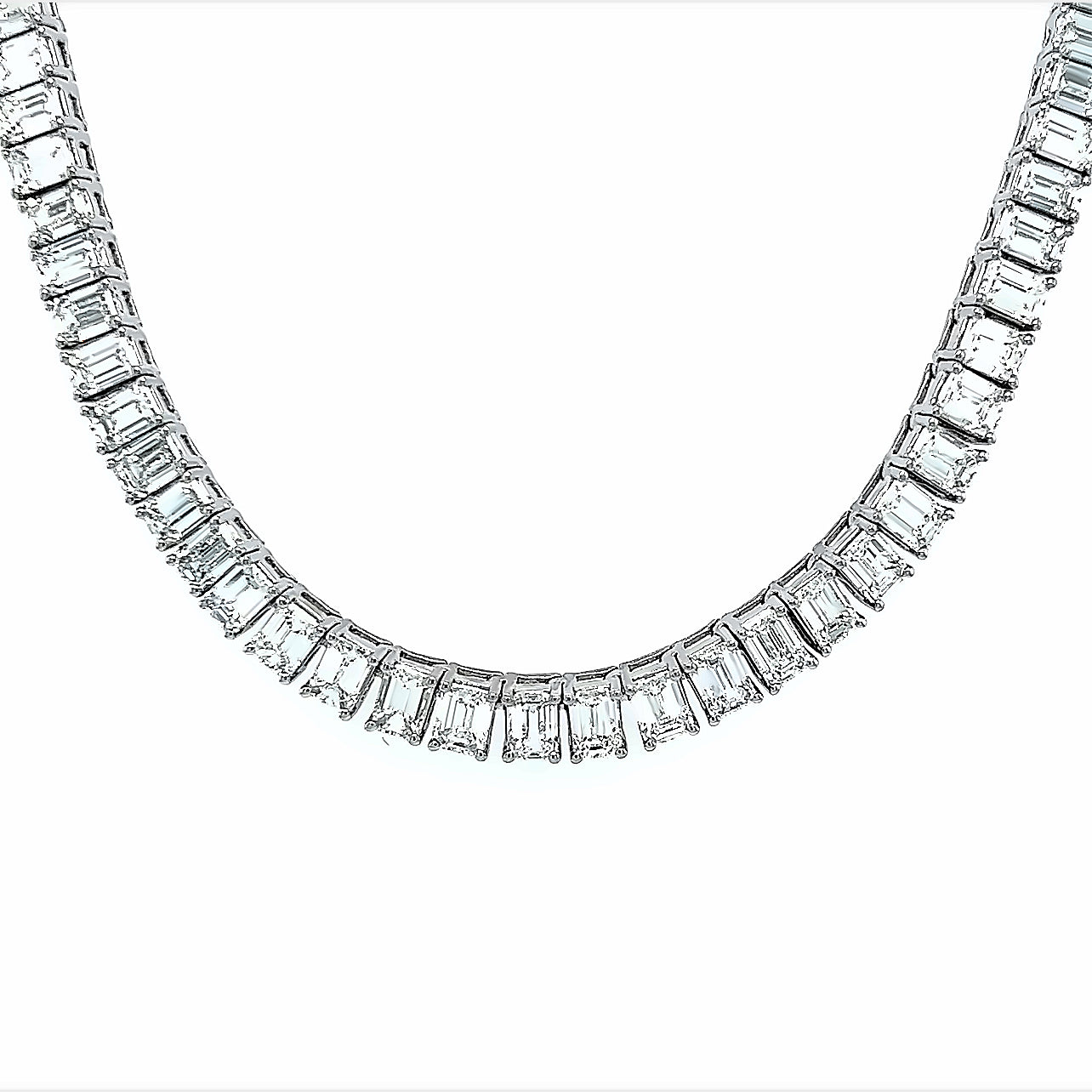 This gorgeous 18k white gold eternity necklace features four emerald-cut stones with a total carat weight of 29.07ct. Its classic design is perfect for any occasion and looks luxurious for a night out or elegant evening attire.