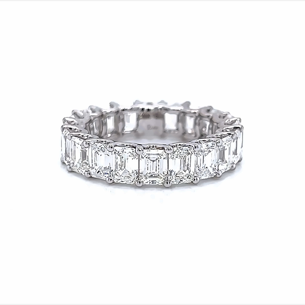 This exquisite 18K white-gold 5.86 carat emerald-cut eternity U-prong ring is the perfect choice for any special occasion. Its classic design, brilliant stones, and U-prong setting make it a timeless symbol of love and commitment.