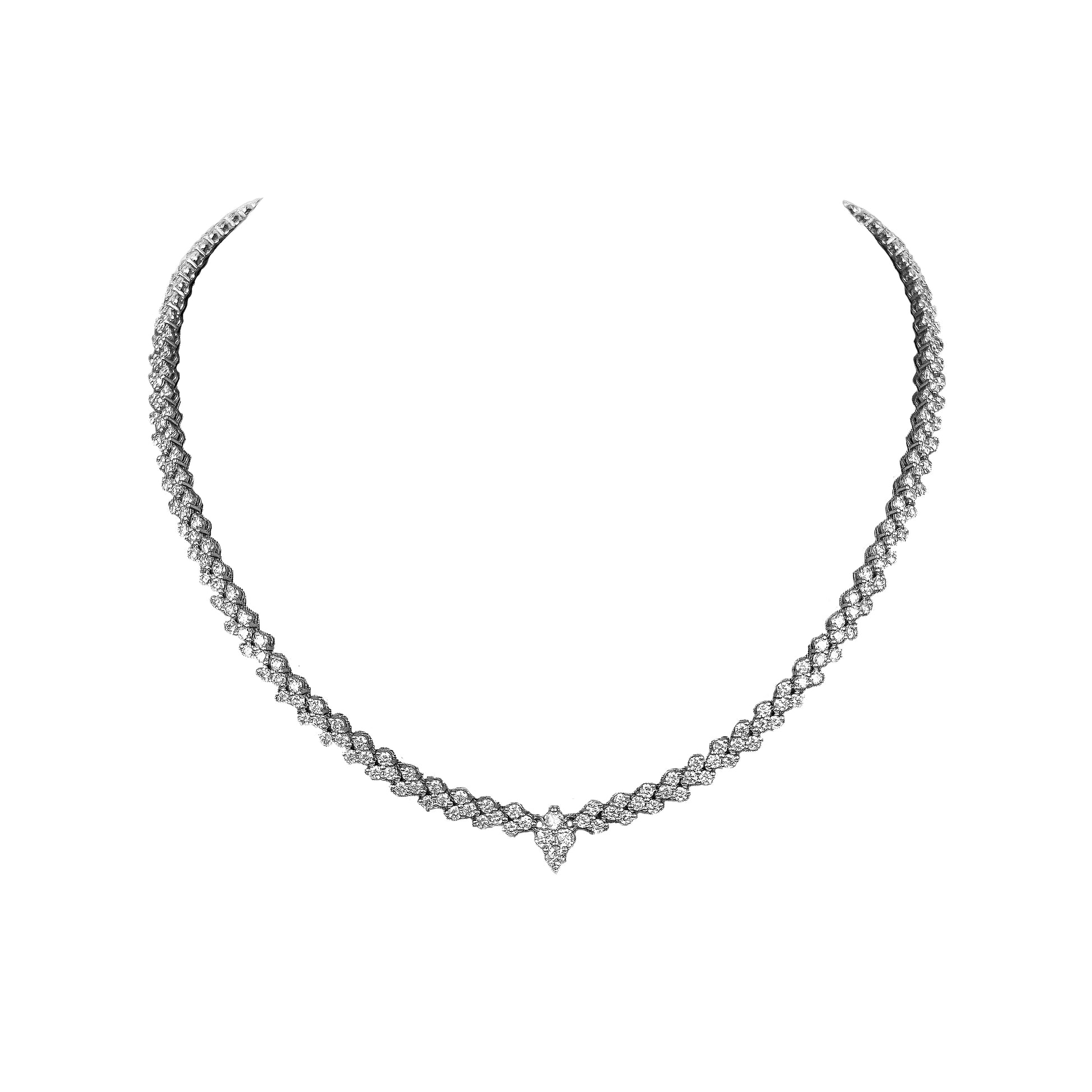 This luxurious diamond necklace is crafted from 18K white gold and features 7.19 carats of round brilliant diamonds. These diamonds are of the highest quality, giving you a stunning and elegant look for any special occasion.