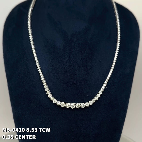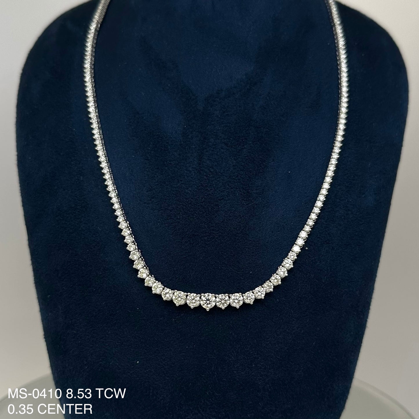 A stunning 8.53 Cts. Natural Round Diamond Riviera Necklace. Crafted of high-grade diamonds with exceptional clarity and cut, this necklace adds a touch of elegant sparkle to any ensemble. A luxurious and timeless piece for special occasions or everyday wear.