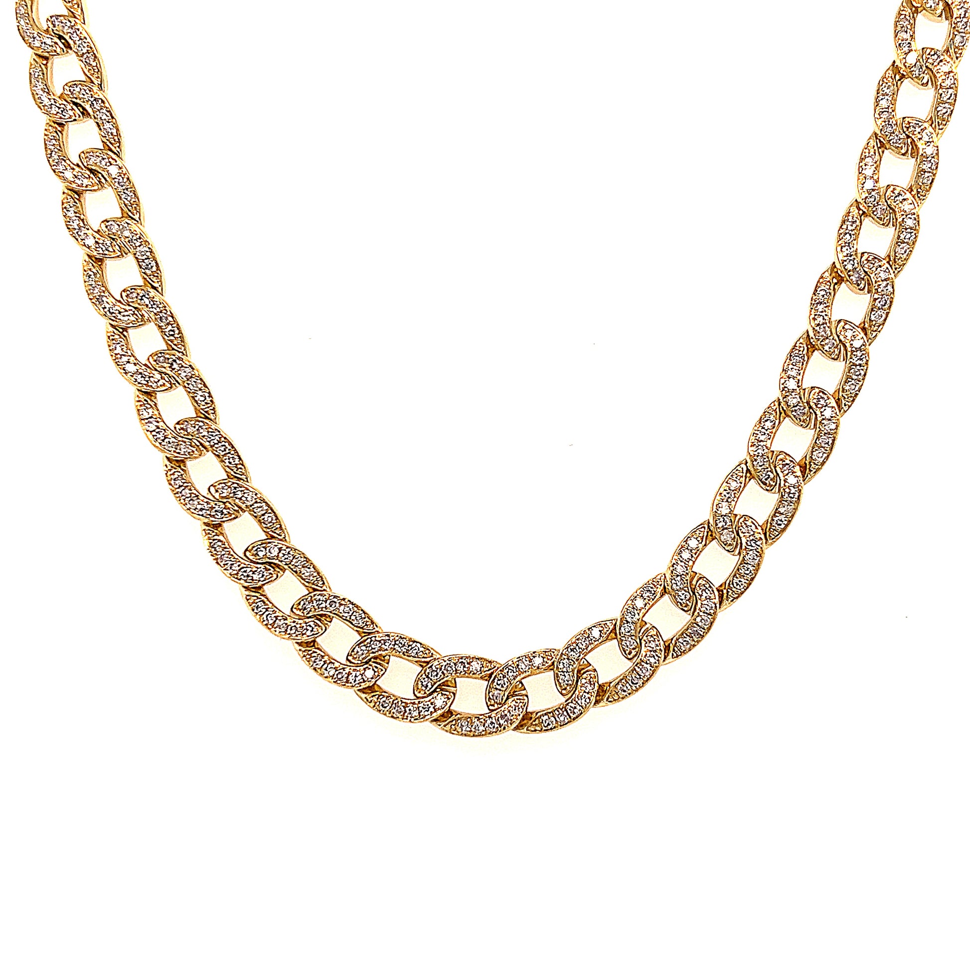 This stunning 18k yellow gold necklace is perfect for a night out or a special occasion. Featuring 3.49tcw round diamonds in a link design, it will be sure to sparkle and impress. Made from solid gold, it's an impressive piece of jewelry that will last for years to come.