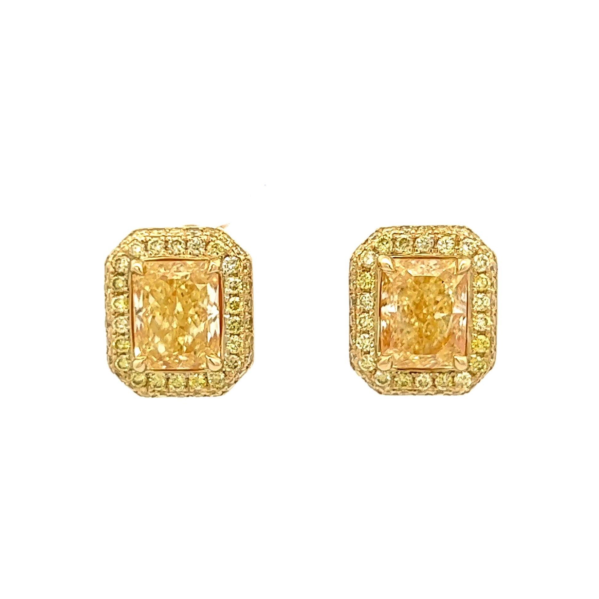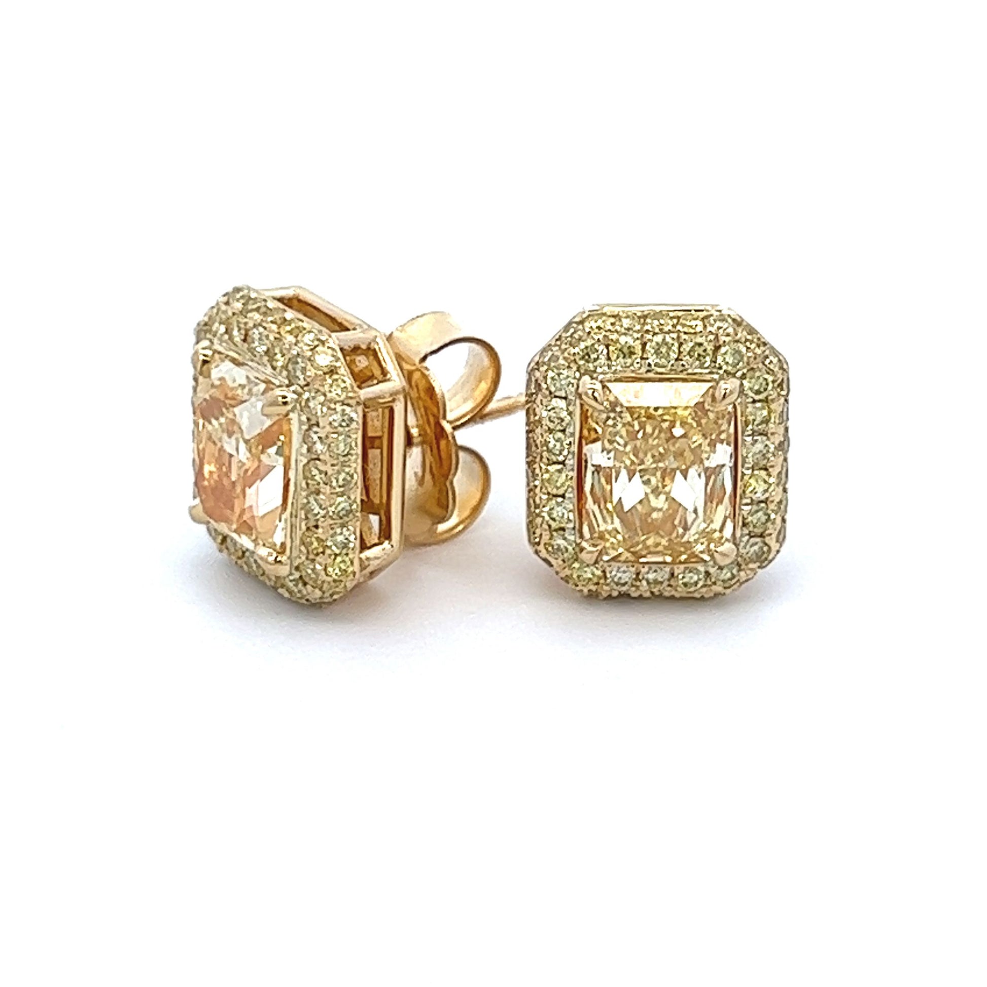 4.01 Radiant Fancy Yellow GIA Stud Earrings