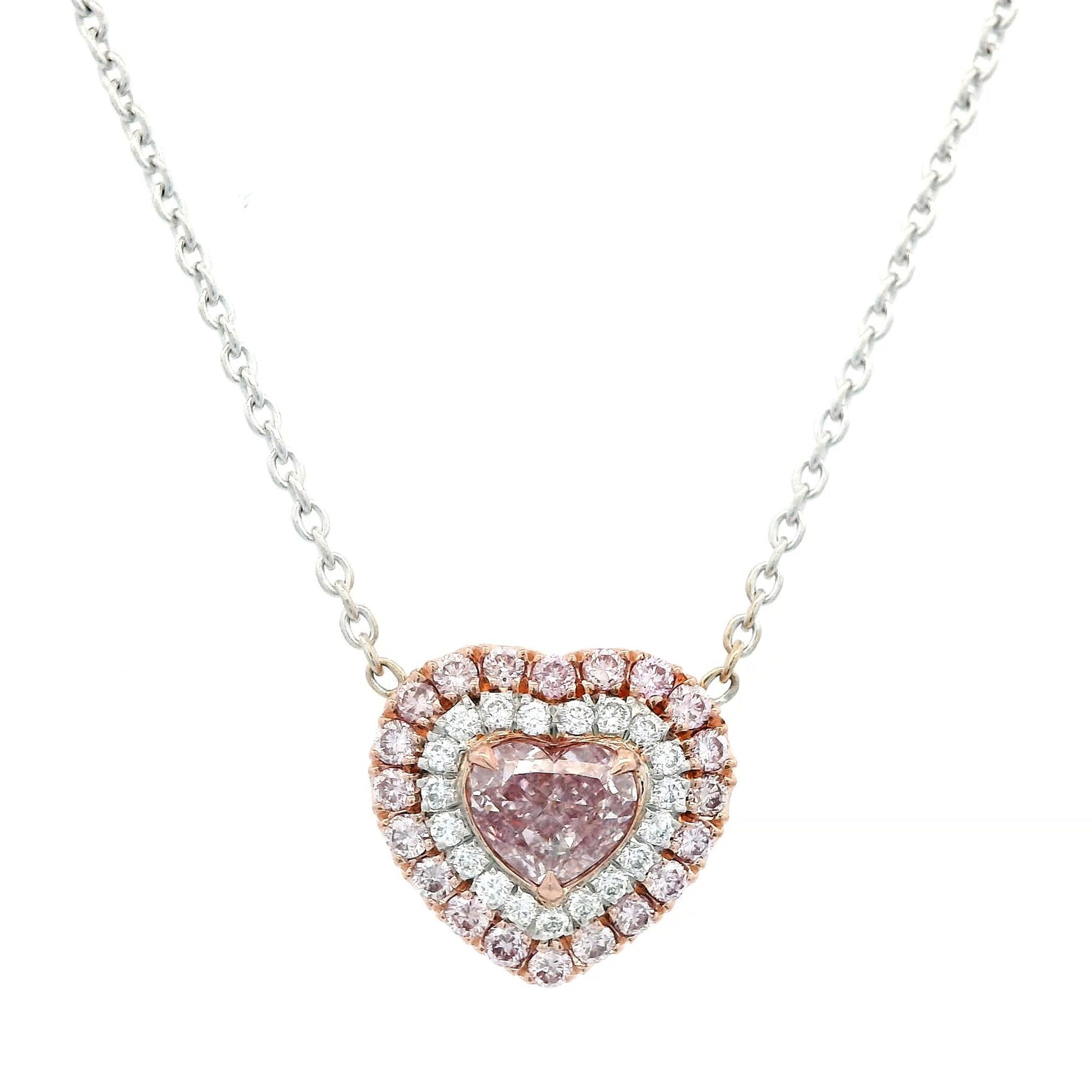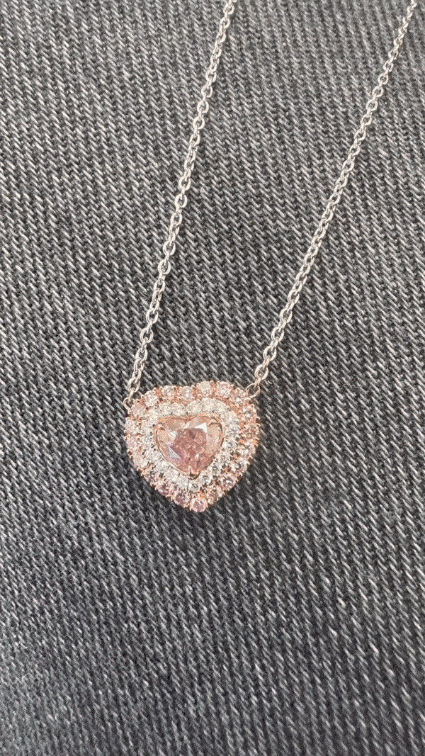 This .50 Natural Pink Heart Shape Necklace is a stunning piece of jewelry that will add a touch of elegance to any outfit. Made with .50 carats of natural pink diamond, this necklace is a must-have for any jewelry lover. With its heart shape design, it is the perfect symbol of love and affection.