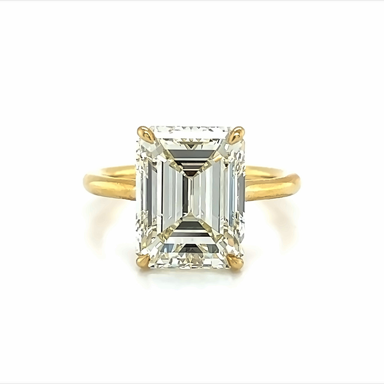 This elegant 6.05 Cts. Natural Emerald Cut Diamond Ring is sure to stun. Crafted with a classic cut and clarity, this ring is sure to shine for generations to come.