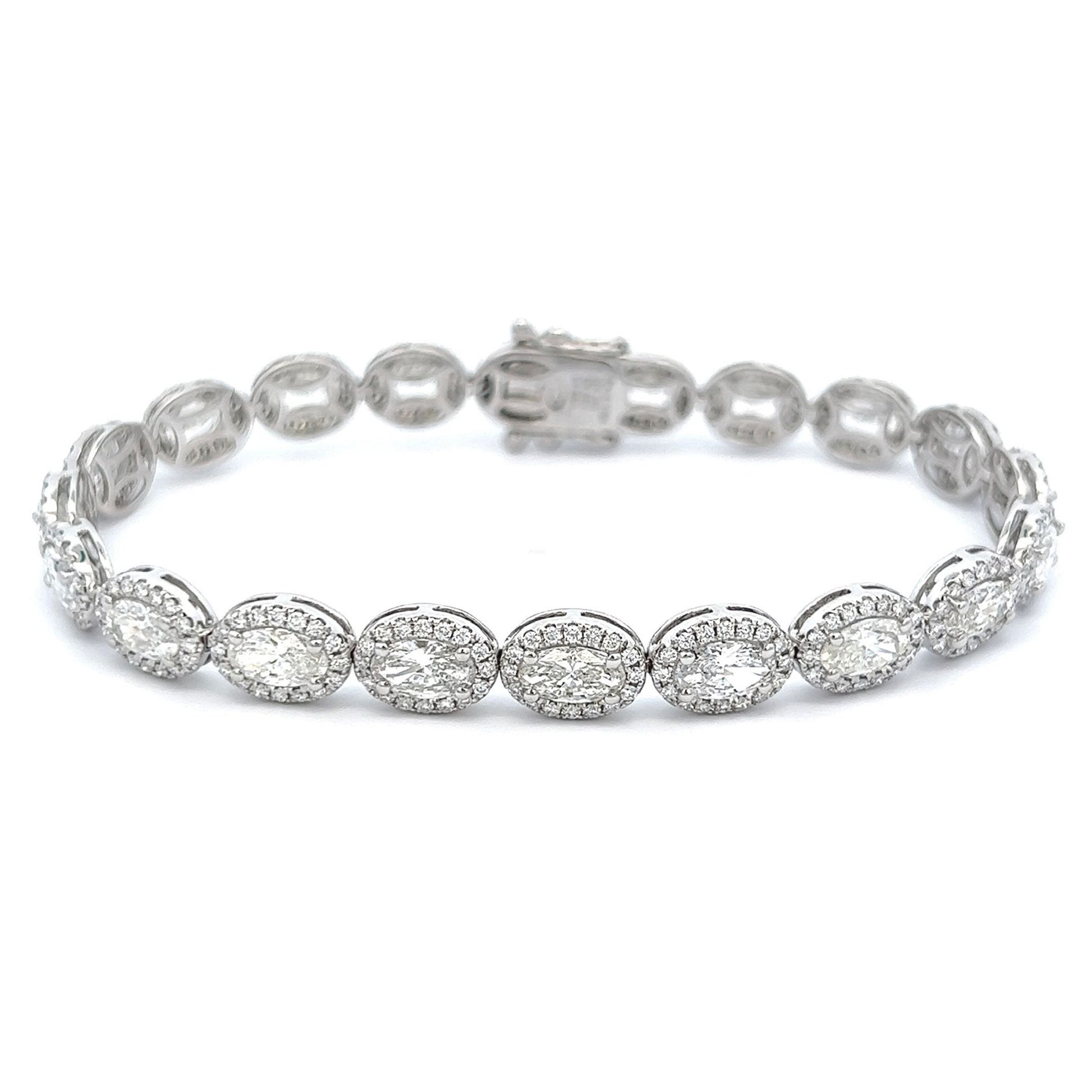Instantly elevate your look with this stunning oval diamond halo tennis bracelet. Hand-crafted with 8.30 carats of natural diamonds, the bracelet offers a remarkable level of sparkle and sophistication perfect for any special event. Boasting a luxurious design, this exquisite bracelet is sure to make a lasting impression.